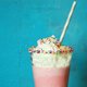 A milkshake is a sweet drink made by blending milk, ice cream, and flavorings or sweeteners such as butterscotch, caramel sauce, chocolate syrup, fruit syrup, or